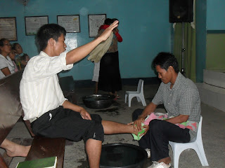 The service was about to end so Bro. Lito called on for the last brother to confess but the call ran through every ear and many, not just one brother, came to confess and ask forgiveness. One brother confessed that he is a slave to pornography and that he seldom reads the Bible despite having a couple of times preached before the pulpit. A sister confessed that she has committed pre-marital sex at the time she was regularly attending church. Another sister confessed that she was once a slave to gambling. Another brother confessed that he is a slave to the attraction of women and that he felt that the Music Ministry, which he is part of, no longer is a blessing to him because of boisterousness and rollicking within the Music Ministry. And many came forth asking forgiveness for whatever sins that have committed and everyone forgave those who bravely came forward to expose the works of the devil. Tears of joy ran that beautiful day. And joy ran throughout the Feet-Washing and Communion Service that night.